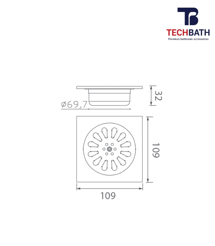 Thông số kỹ thuật ga thoát sàn TECHBATH T2021.08