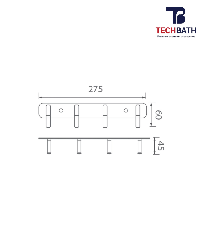Móc treo quần áo TECHBATH T1403.01 có 4 móc cho bạn thoải mái treo nhiều vật dụng khác nhau. Có thể sử dụng trong phòng tắm, nhà bếp hay nhiều không gian khác.