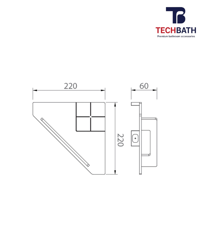 Kích thước nhỏ gọn: Với kích thước 220x60x220mm, kệ phù hợp với nhiều không gian phòng tắm khác nhau.