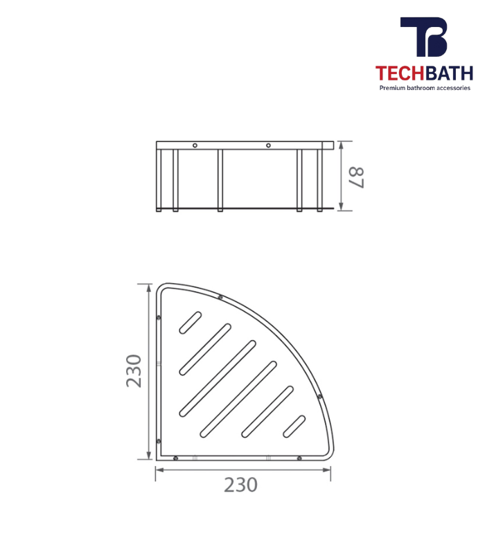 Kệ góc inox TECHBATH T1514.03 có kích thước nhỏ gọn 230x230x87mm nhưng công năng nó đem lại rất tuyệt vời, giúp bạn để nhưng đồ vận khi đi tắm mà không lo bị ướt.