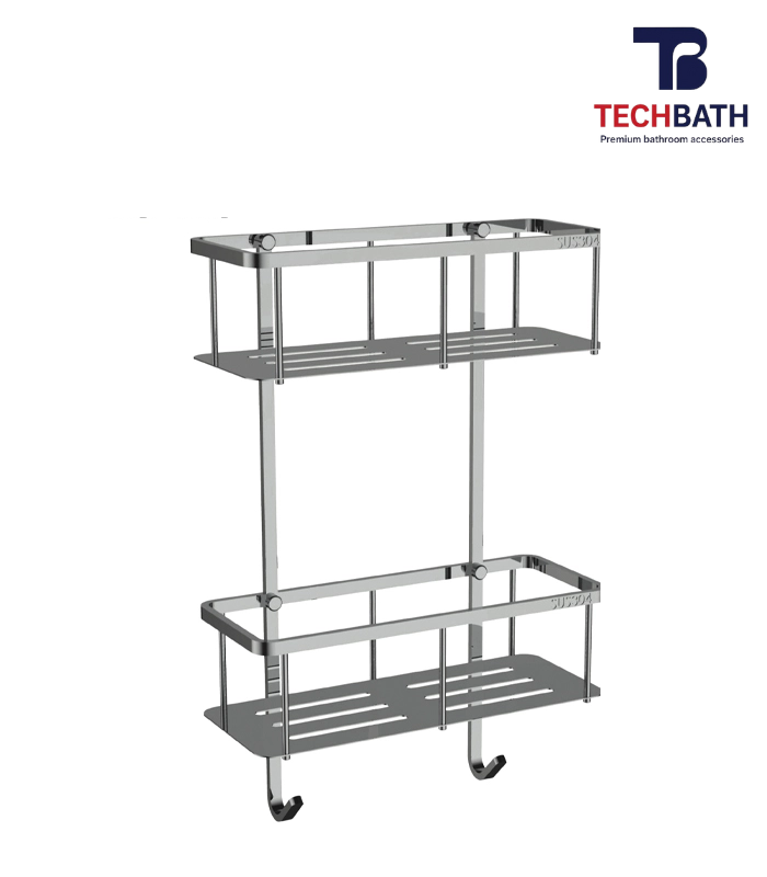 Dòng kệ inox phòng tắm TECHBATH T1514.15 này được thiết kế với hai giỏ hình chữ nhật rộng rãi và chắc chắn có thể để được nhiều vật dụng nhà tắm khác nhau, từ đó tiết kiệm không gian sử dụng.